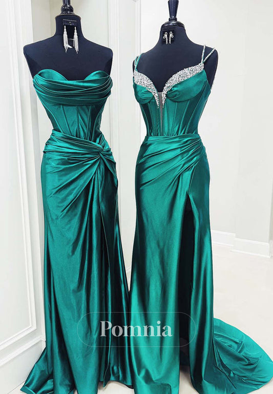 Spaghetti Straps V-Neck Prom Dress with Slit Evening Party Dress