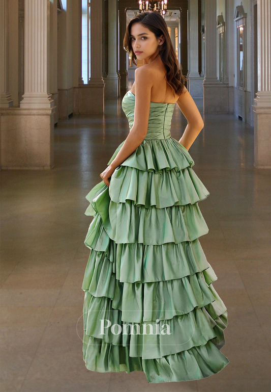 Simple A-Line Strapless Sleeveless Prom Dress with Ruffles Slit Evening Party Dress