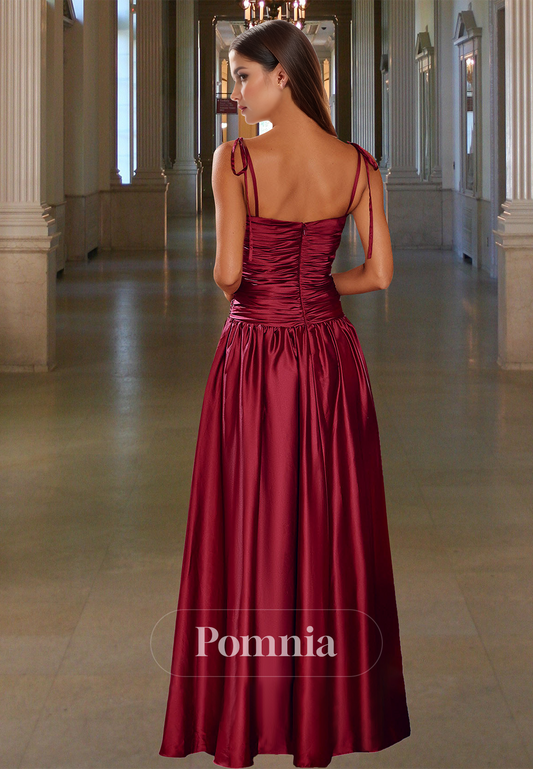 Burgundy Spaghetti Straps Scoop Prom Dress with Pleats Empire-Waist Evening Party Dress