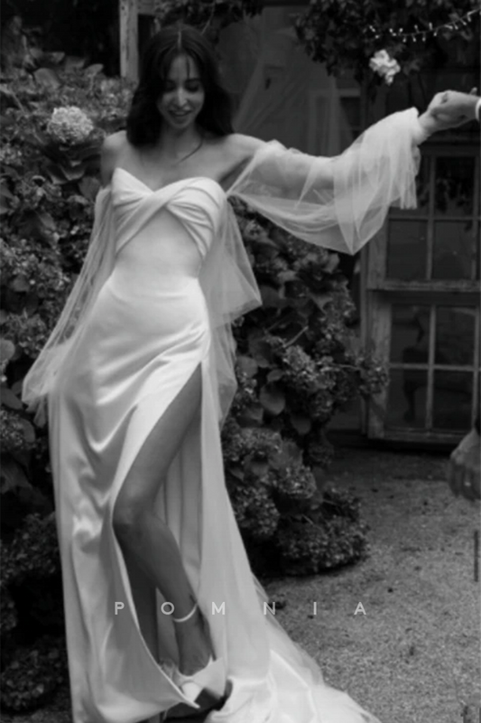 P3062 - Classy Strapless Long Sleeves Simple High Split Bohemian Wedding Dress