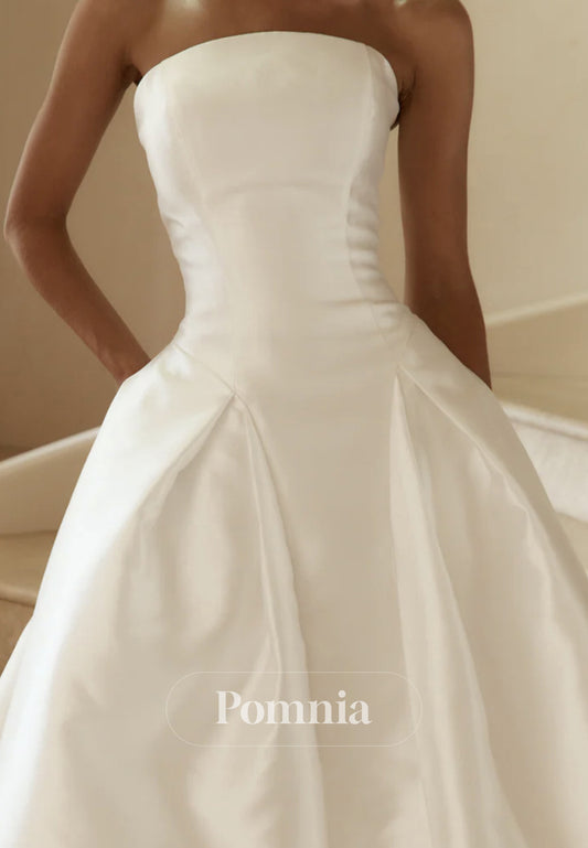 Charming A-Line Sleeveless Strapless Pearls Satin Wedding Dress