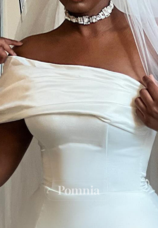 Sheath Off-Shoulder Sleeveless Ruched Satin Wedding Dress