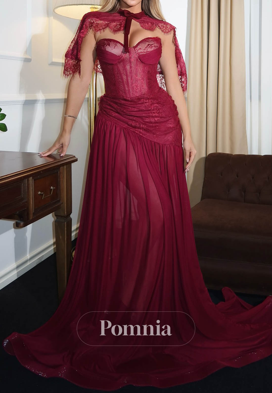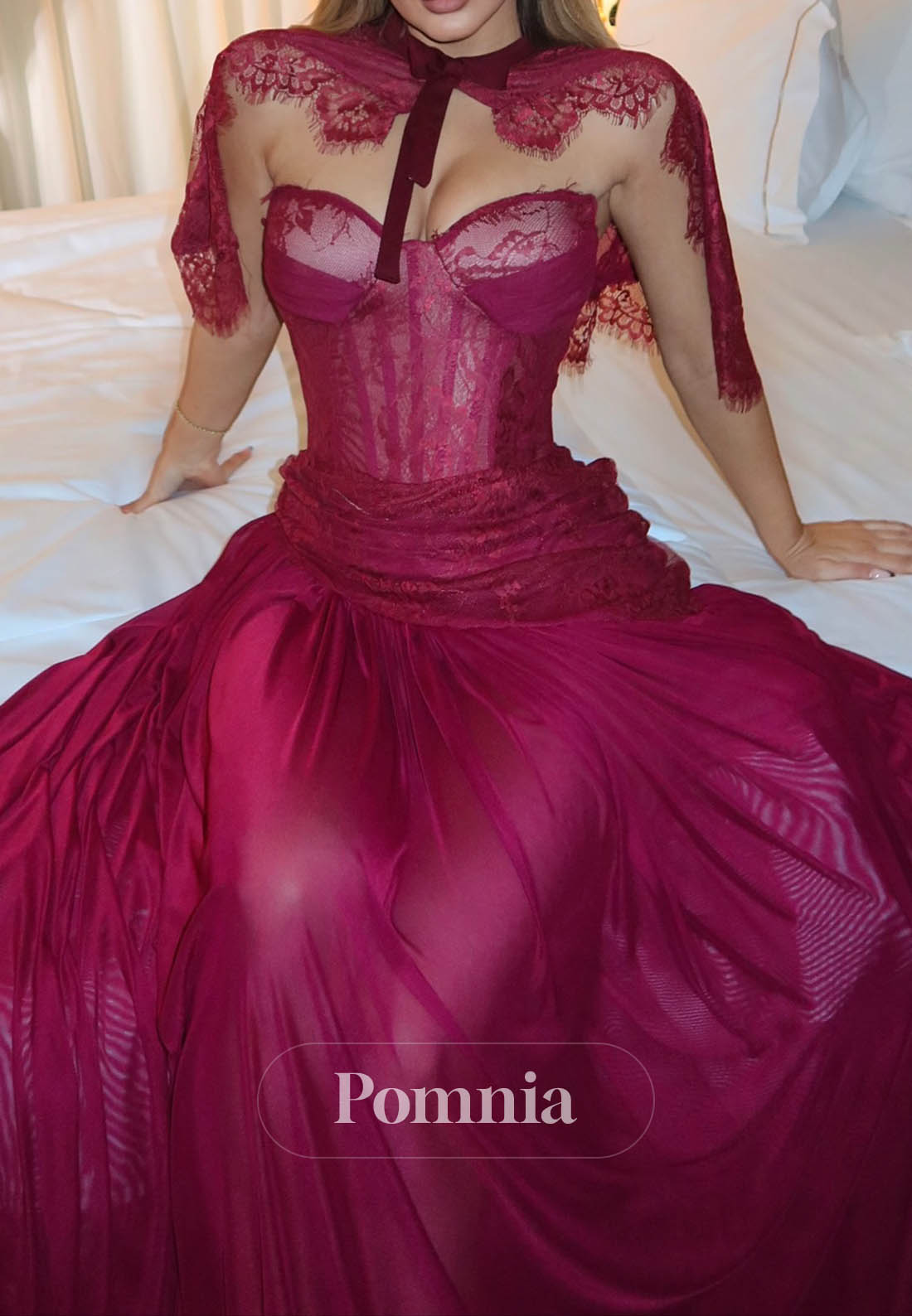 Mulberry Sleeveless Strapless A-Line Corset Tulle Prom Dress