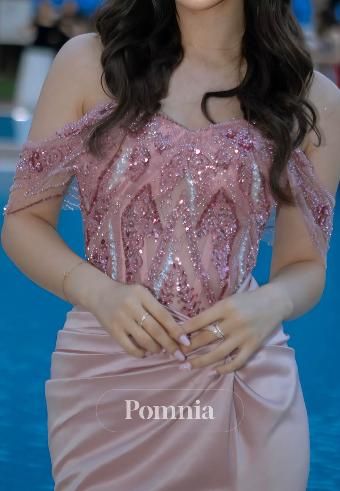 This blushing pink prom dress combines romantic elegance with contemporary design. Delicate spaghetti straps support a sweetheart neckline that flatters the décolletage, while expertly placed ruching adds dimension and visual interest to the bodice. The soft pink hue creates a timeless, feminine aesthetic that photographs beautifully. Designed for those who appreciate classic sophistication with subtle modern touches, this gown delivers refined grace for your most important evening.