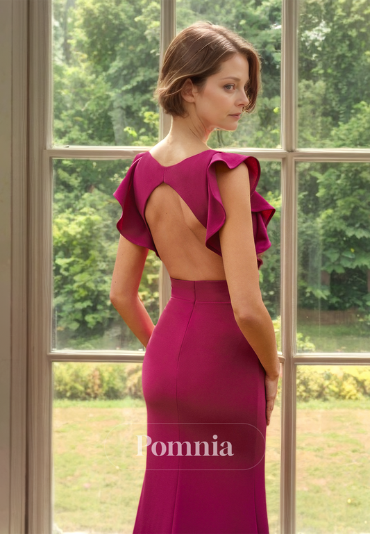 V-Neck Mermaid Wedding Guest Dress with Slit Sweep Train Mother of the Bride Dress