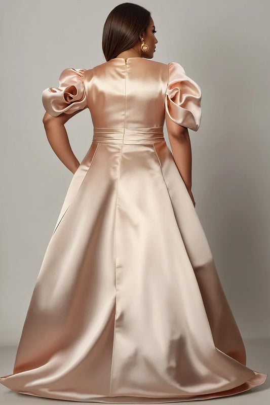 Mother Of The Bride Champagne Short Sleeve Peplum 3D Satin Midi Dress
