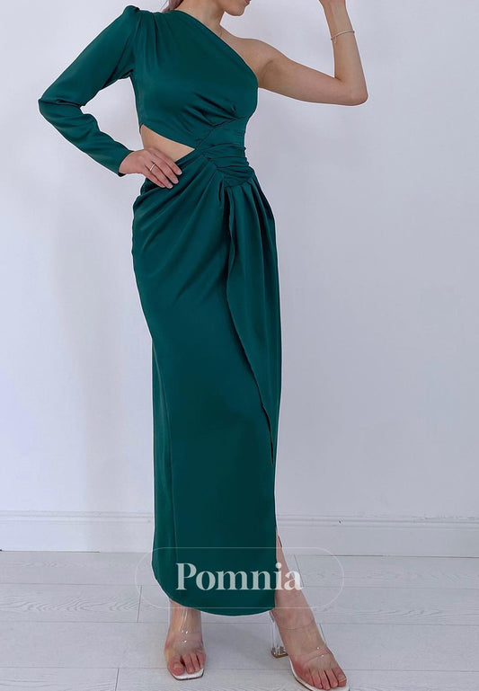A-Line Long Sleeves One Shoulder Empire-Waist Ruched Cocktail Dress