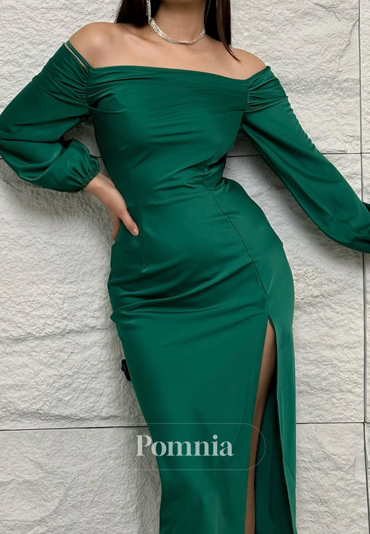 Dark Green Long Sleeves Scoop Knee-Length Cocktail Dress