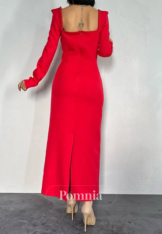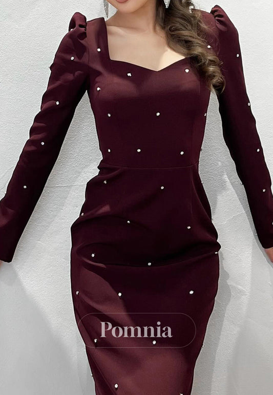 Long Sleeves Sweetheart Pearls Knee-Length Cocktail Dress