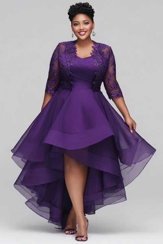 Mother Of The Bride Purple 3/4 Sleeve Asymmetric Hem Dress
