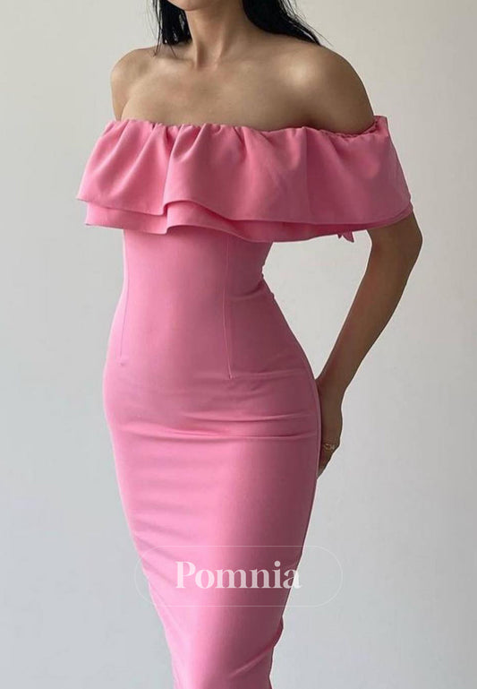 Blushing Pink Off-Shoulder Knee-Length Cocktail Dress