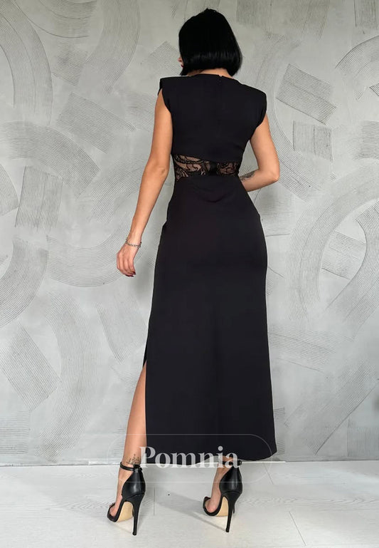 Black A-Line Sleeveless Scoop Corset Satin Eevning Dress