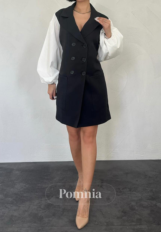 A-Line Long Sleeves V-Neck Mini Work Dress