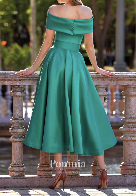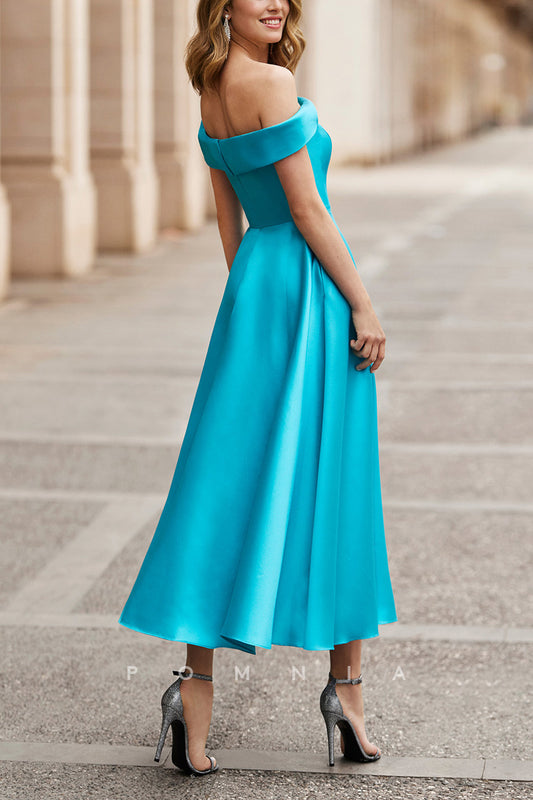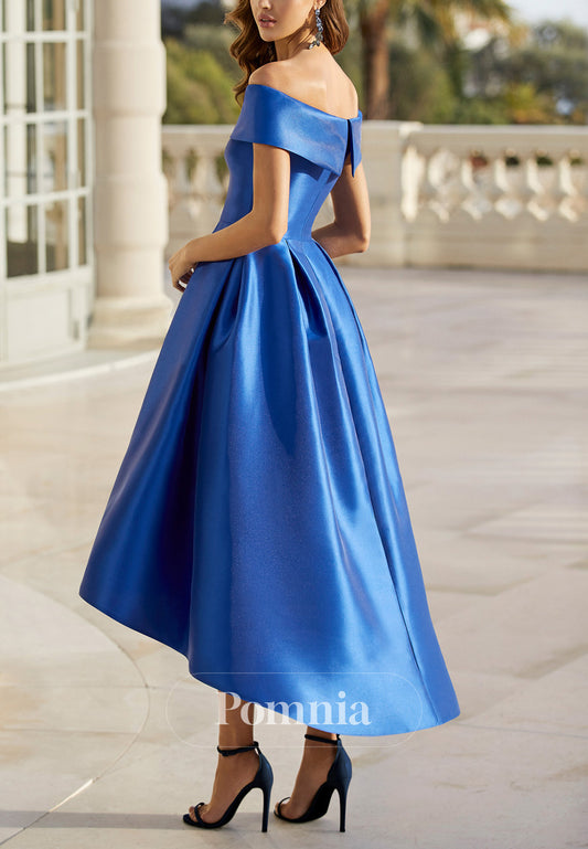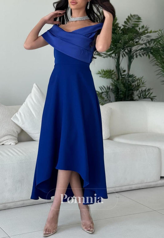 Royal Blue A-Line Off-Shoulder Empire-Waist Cocktail Dress