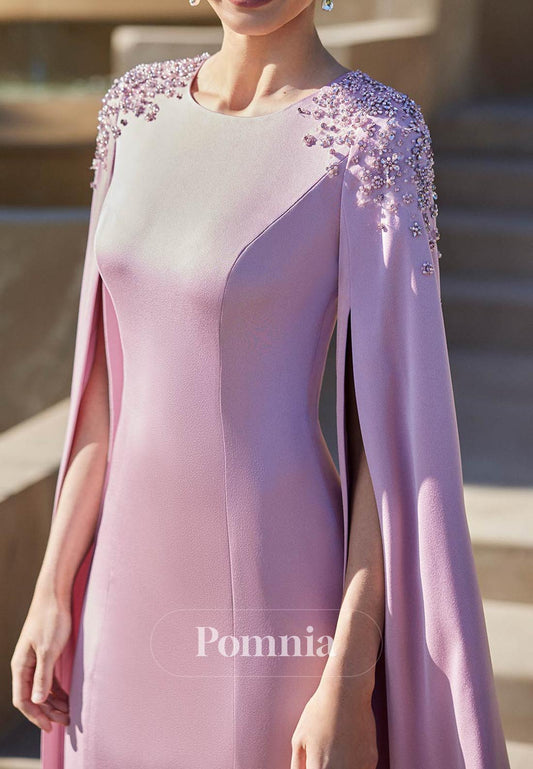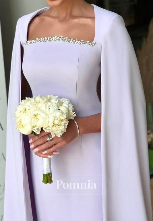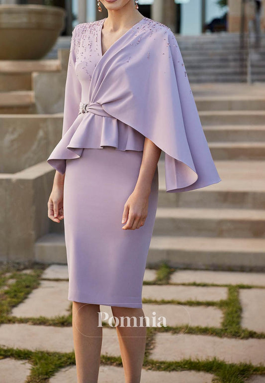 Lilac Square Cape Sequins Knee-Length Cocktail Dress