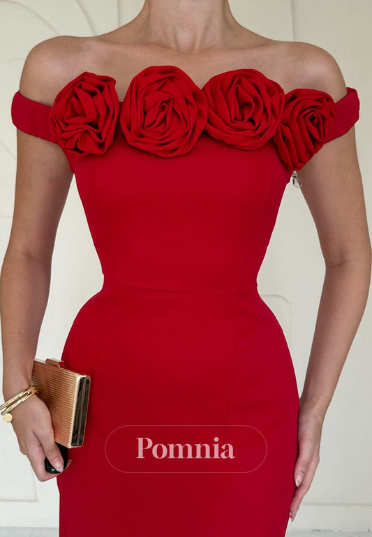 Off-Shoulder Floral Appliques Corset Slit Cocktail Dress