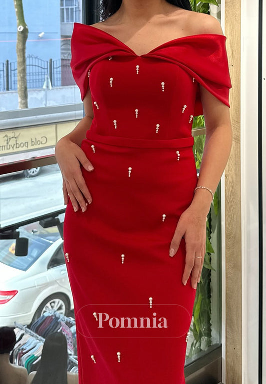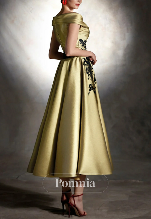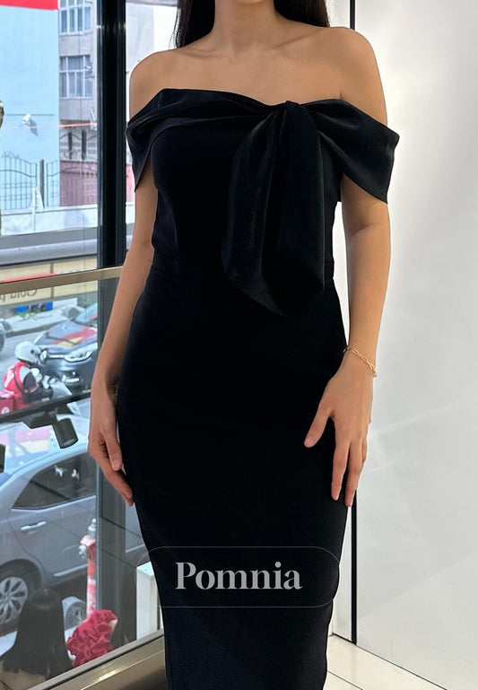 Black Off-Shoulder Appliques Ankle-Length Cocktail Dress