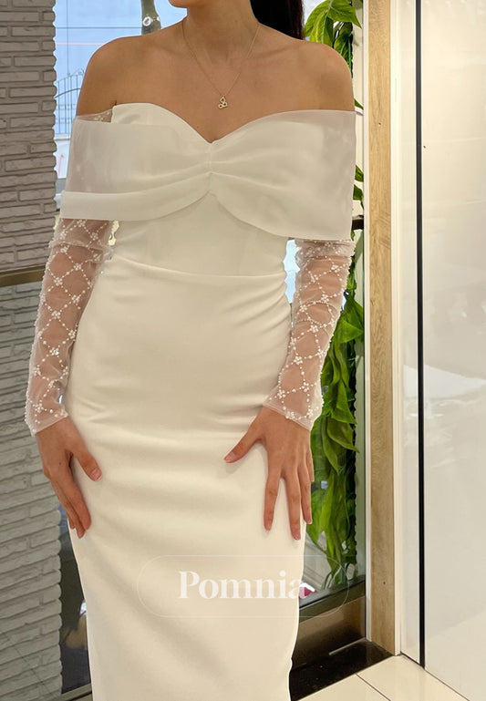 Off-Shoulder Long Sleeves Ruched Satin Cocktail Dress