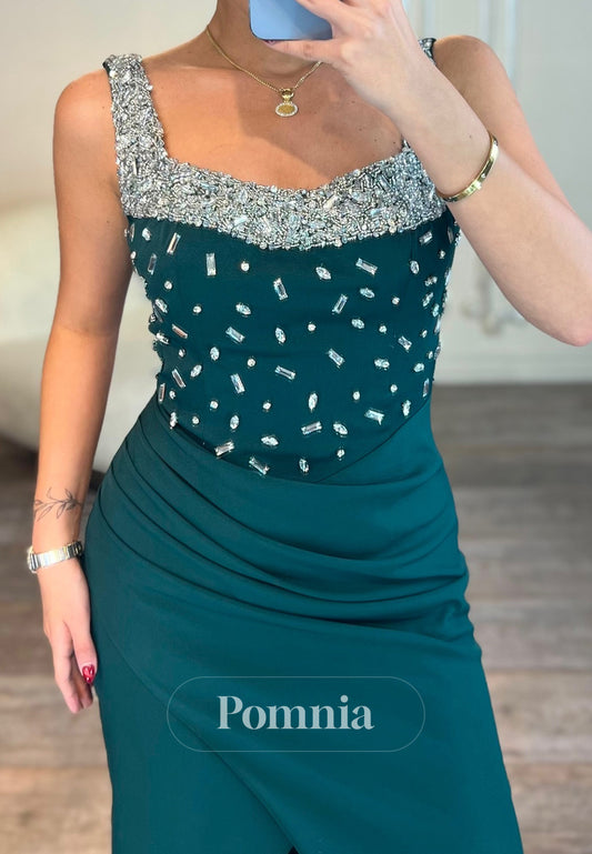Dark Green Spaghetti Straps Scoop Beads Evening Dress
