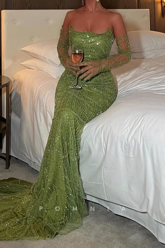 P1970 - Stunning Strapless Scoop Mermaid Bead Embroidery Long Evening Formal Dress