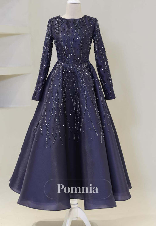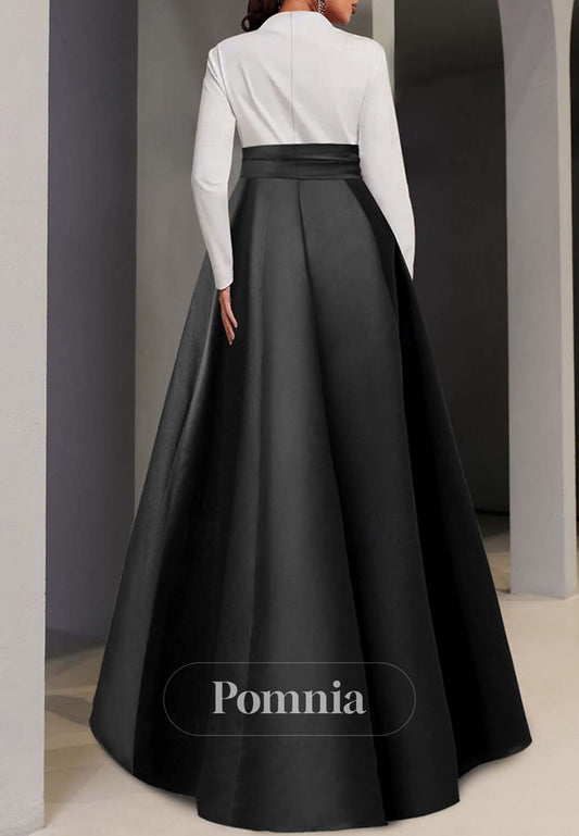 A-Line High Neck Long Sleeves Empire-Waist Prom Party Dress