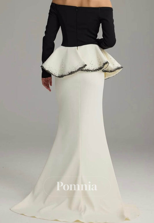 Elegant Long Sleeves Off-Shoulder Empire-Waist Evening Dress