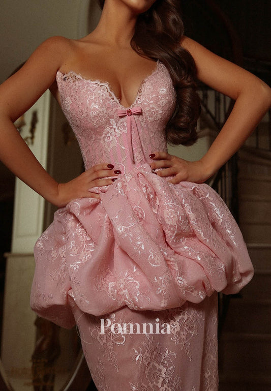 Bella Customized Pink Puff Sleeve Strapless Mermaid robes de soirée Chiffon Side Slit Party Dress