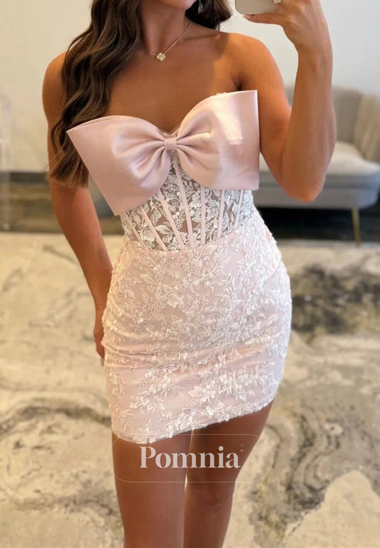 A-Line Strapless Sleeveless Bowknot Corset Homecoming Dress