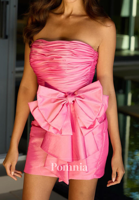 Candy Pink Strapless Sleeveless Bowknot Homecoming Dress