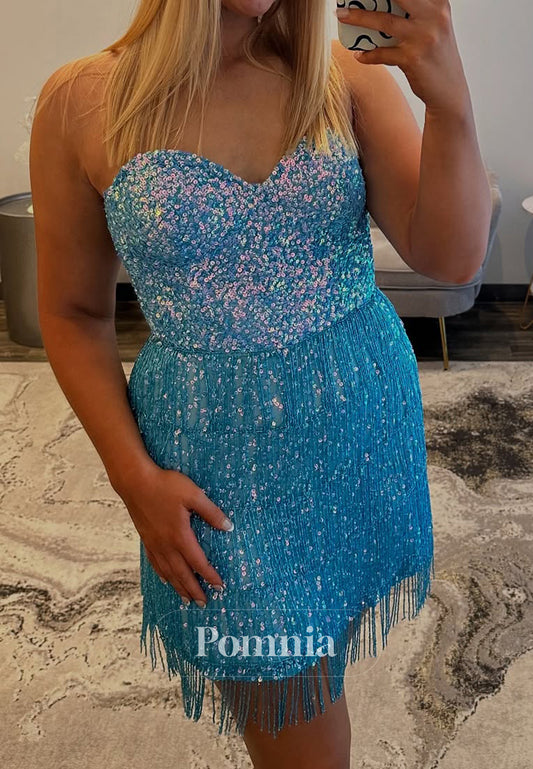 Pool Strapless Sleeveless Sequins Mini Homecoming Dress