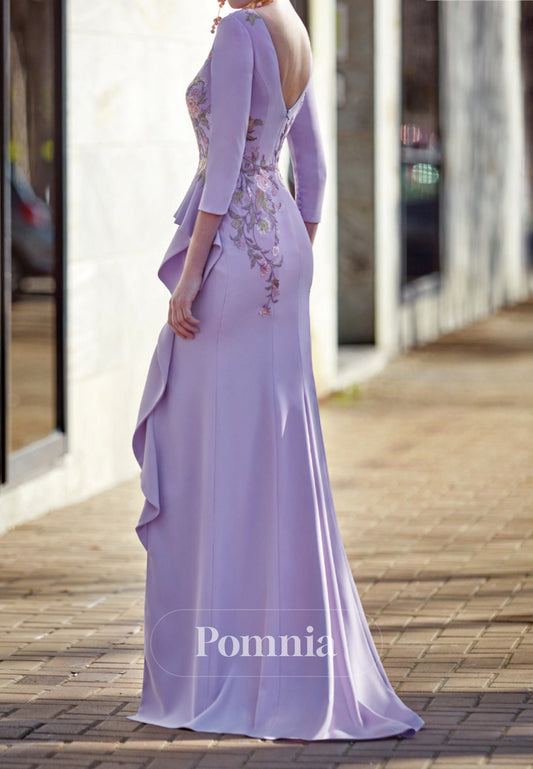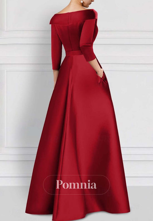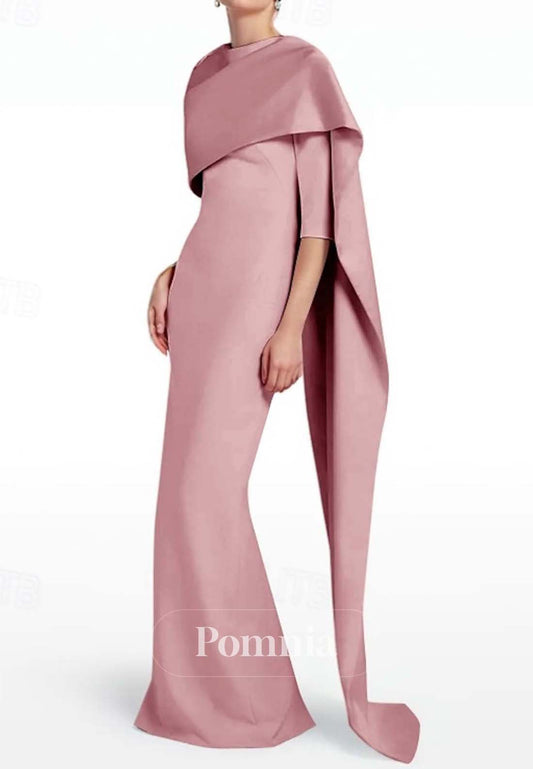 Elegant Half Sleeves Scoop Floor-Length Satin Evening Dress