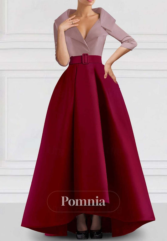Elegant A-Line Floral Print V-Neck Pocket Satin Mother of the Bride Dress