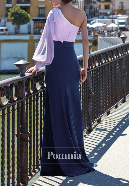 P9170 - Sheath/Column One Shoulder Long Sleeves Empire-Waist Cocktail Dress Wedding Guest Dress