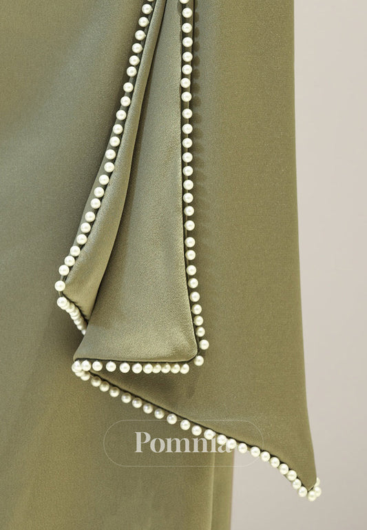 Elegant Long Sleeves Scoop Empire-Waist Pearls Satin Formal Dress