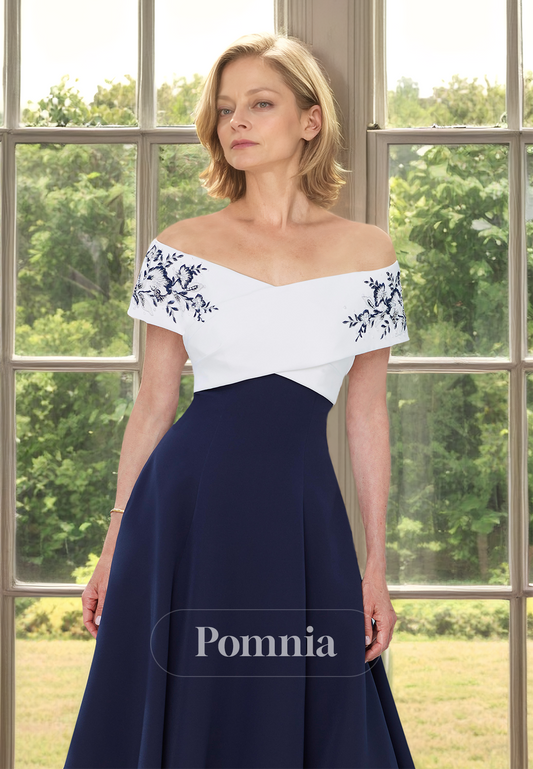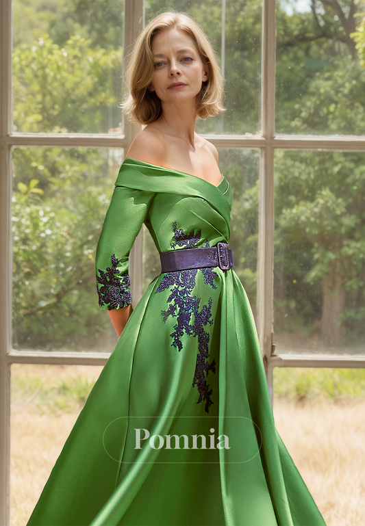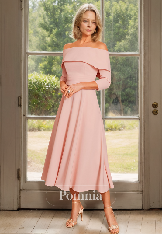 Charming A-Line 3/4 Sleeves Off-Shoulder Empire-Waist Mother of the Bride Dress