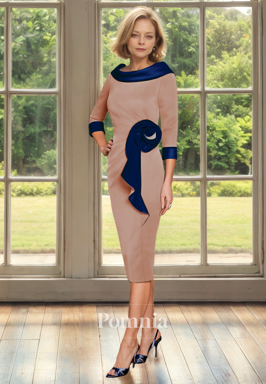 Elegant Off-Shoulder 3/4 Sleeves Appliques Knee-Length Mother of the Bride Dress