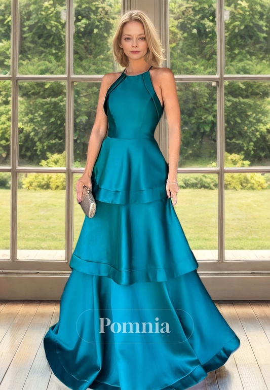 Halter Sleeveless Ruffles Tiered Floor-Length Mother of the Bride Dress
