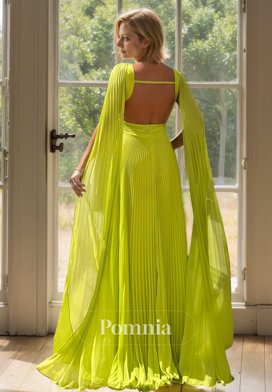 Green A-Line Cap Sleeves Asymmetrical Floor-Length Mother of the Bride Dress