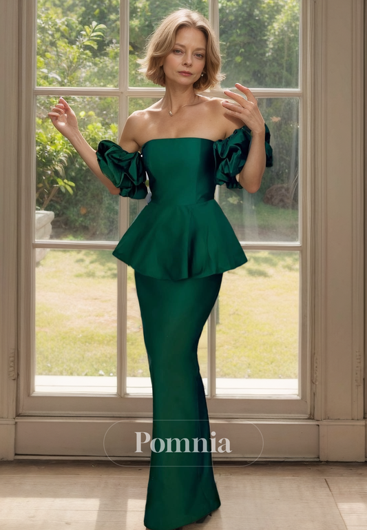Mermaid Cap Sleeves Off-Shoulder Floor-Length Mother of the Bride Dress