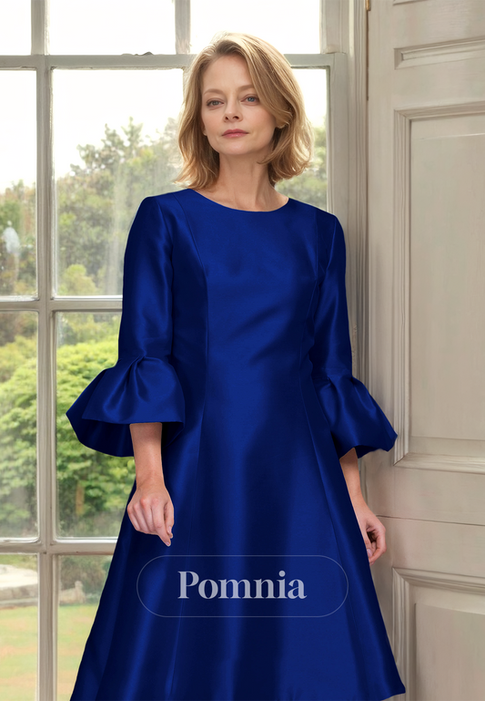 Simple A-Line Scoop 3/4 Sleeves High Low Satin Mother of the Bride Dress