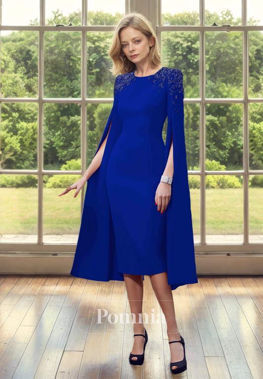 Sheath Cap Sleeves Scoop Beads Knee-Length Mother of the Bride Dress