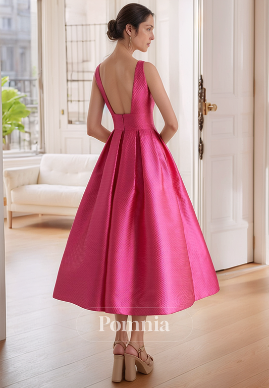 Fuchsia A-Line Spaghetti Straps Square Backless Mother of the Bride Dress