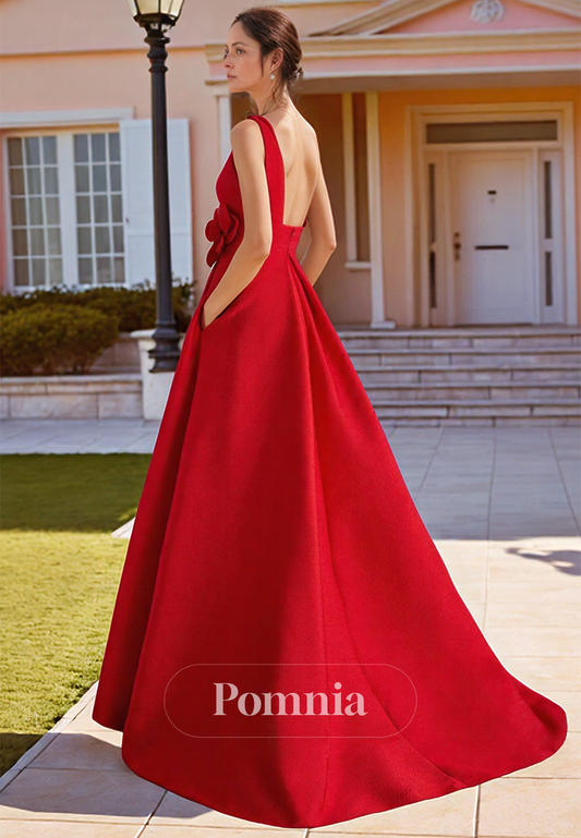 A-Line Scoop Sleeveless Backless Satin Evening Dress