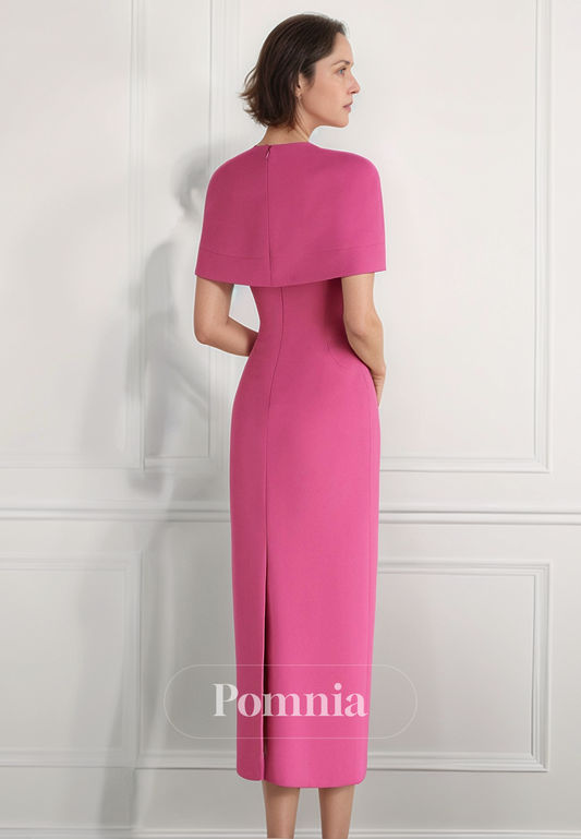 Candy Pink Short Sleeves Scoop Satin Cocktail Mother of the Bride Dress