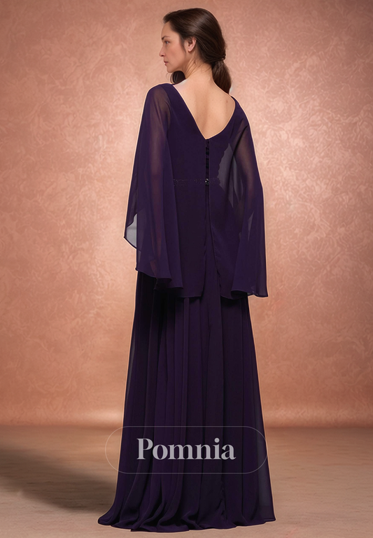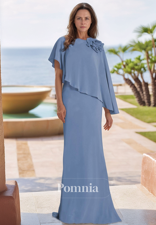 Simple Shawl Scoop Floor-Length Chiffon Mother of the Bride Dress