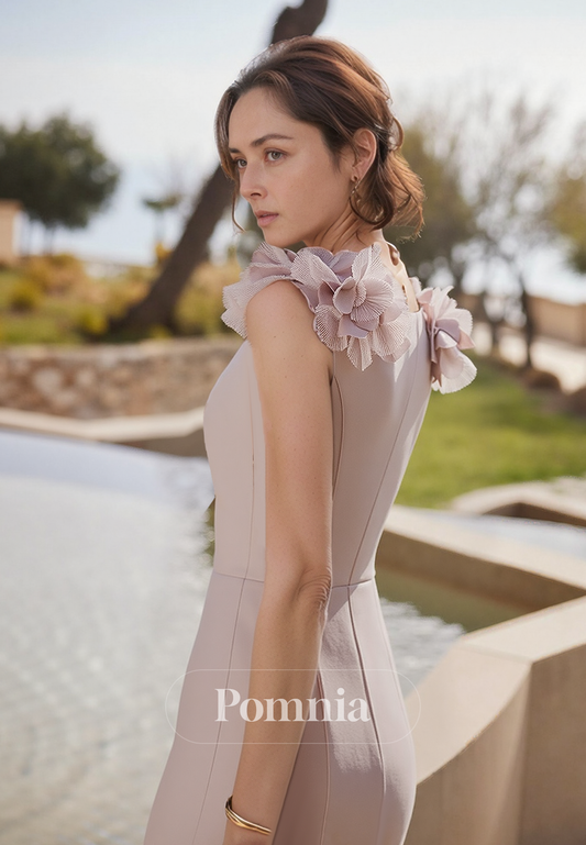 Flamingo Sheath Sleeveless Empire-Waist Ruched Cocktail Mother of the Bride Dress