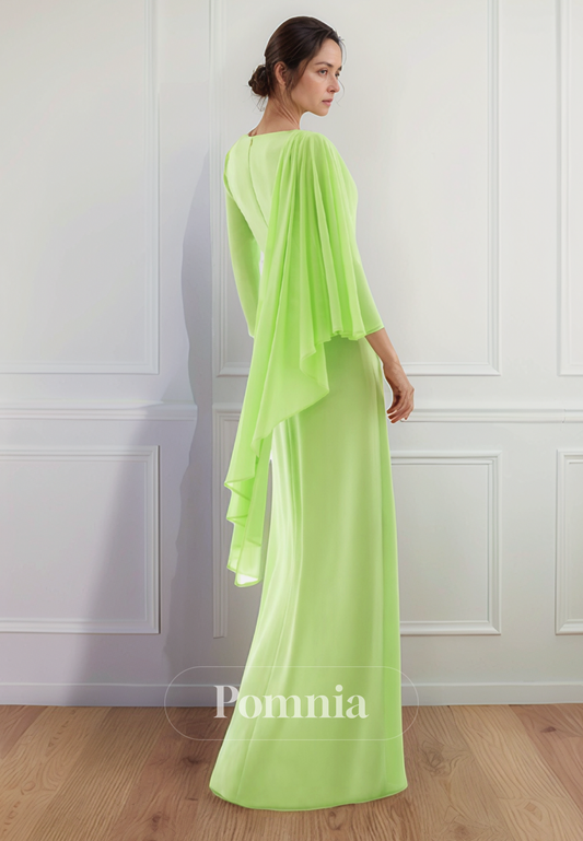 Elegant Green Long Sleeves V-Neck Chiffon Mother of the Bride Dress.