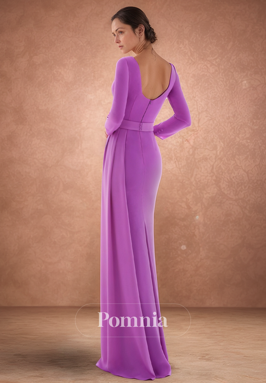 Mermaid Long Sleeves Square Bowknot Floor-Length Mother of the Bride Dress