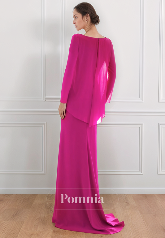 Fuchsia A-Line Long Sleeves Scoop Floor-Length Mother of the Bride Dress