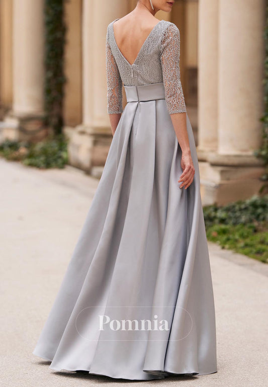 Elegant Sheath Half Sleeves V-Neck Satin Mother of the Bride Dress